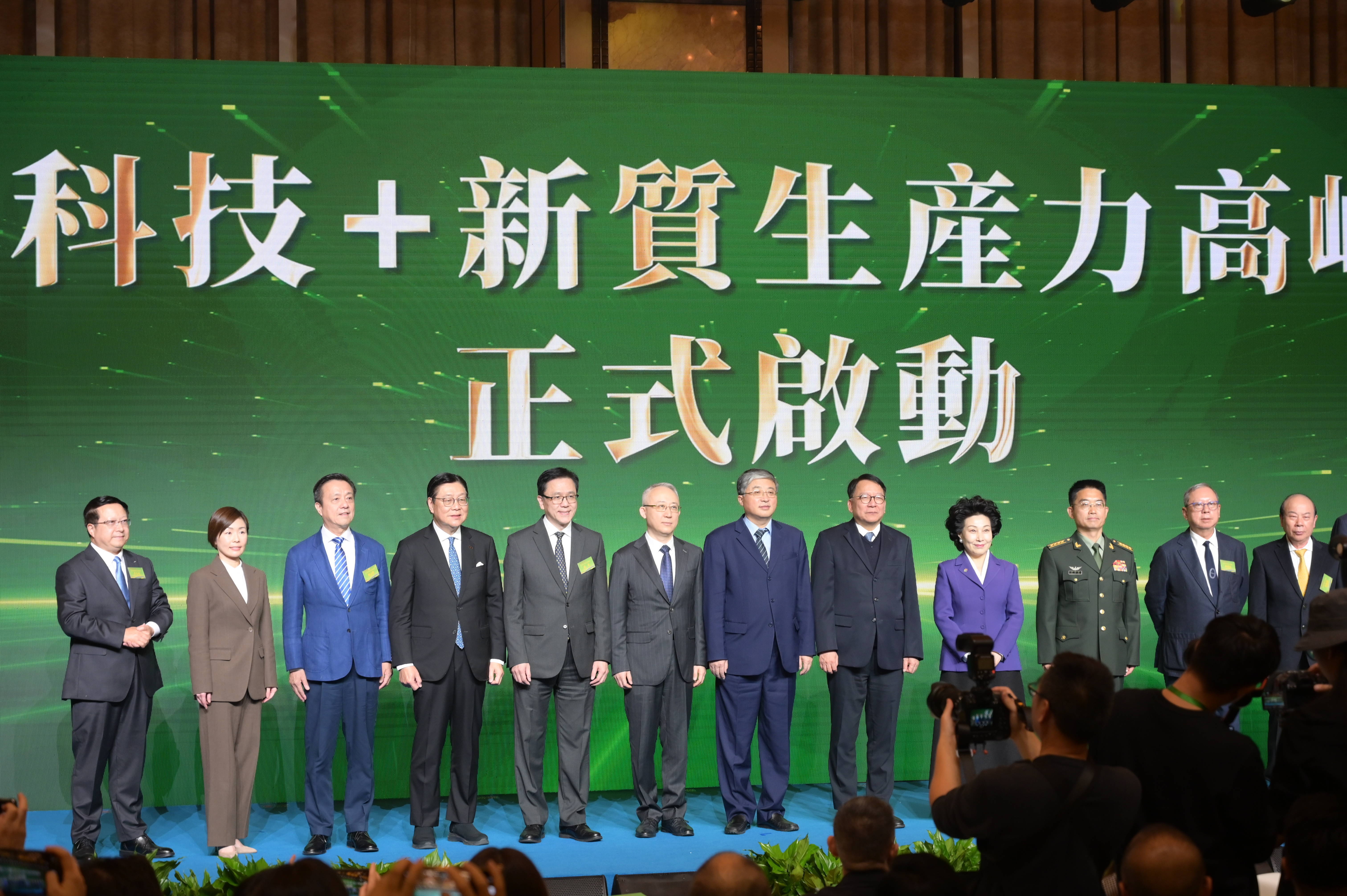 12月16日,主礼嘉宾在“2025科技+新质生产力高峰论坛”上合影。新华社发(谭佳铭摄)开幕式上,特区署理行政长官陈国基致辞表示,香港的创科布局以“三大创科园区、五大研发机构”为主体,旨在贯通上、中、下游的协同发展,打造完整的创新生态。香港会充分发挥内联外通的桥梁优势,吸引具备前沿技术与高阶科研能力的企业落户,不断壮大本地创科生态圈。